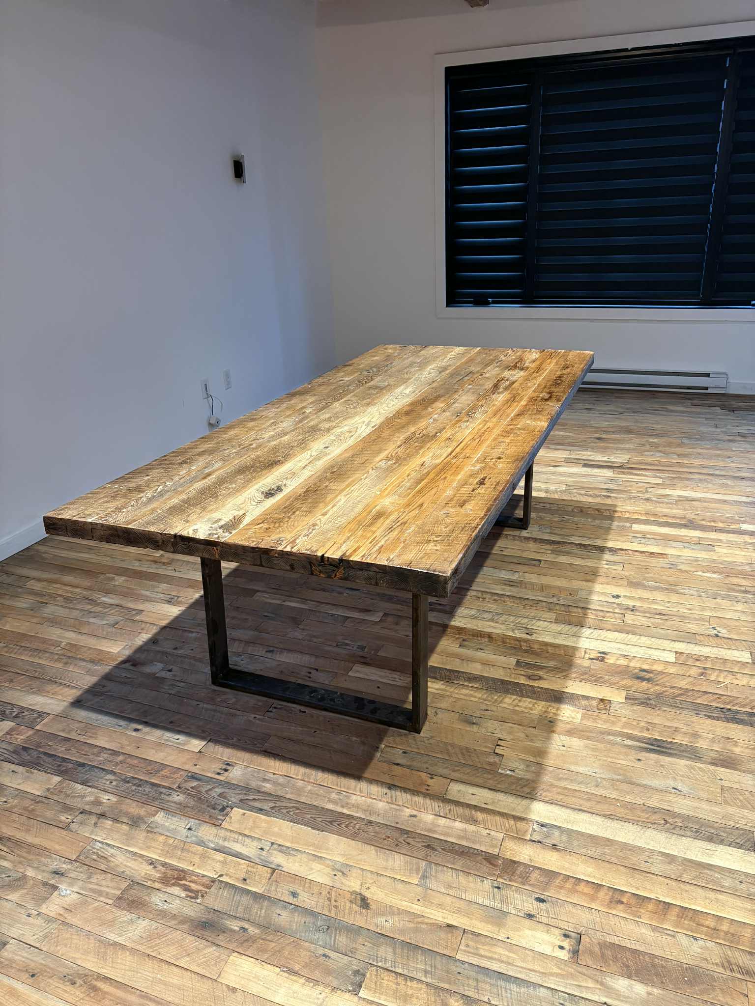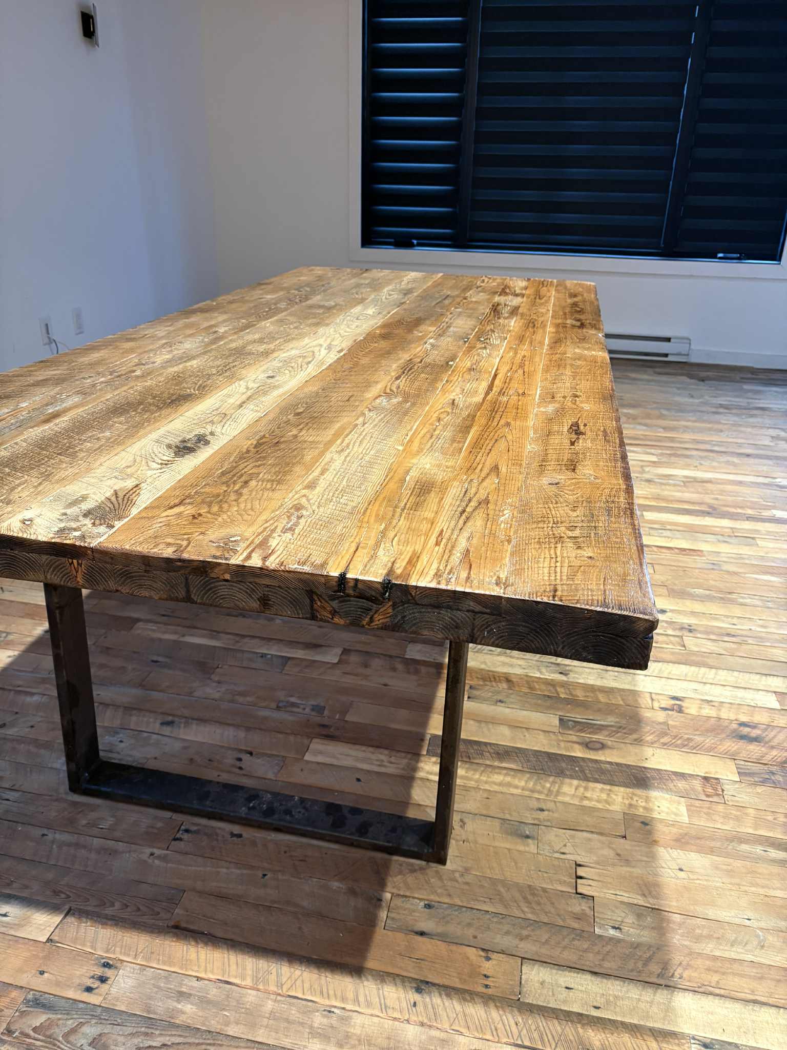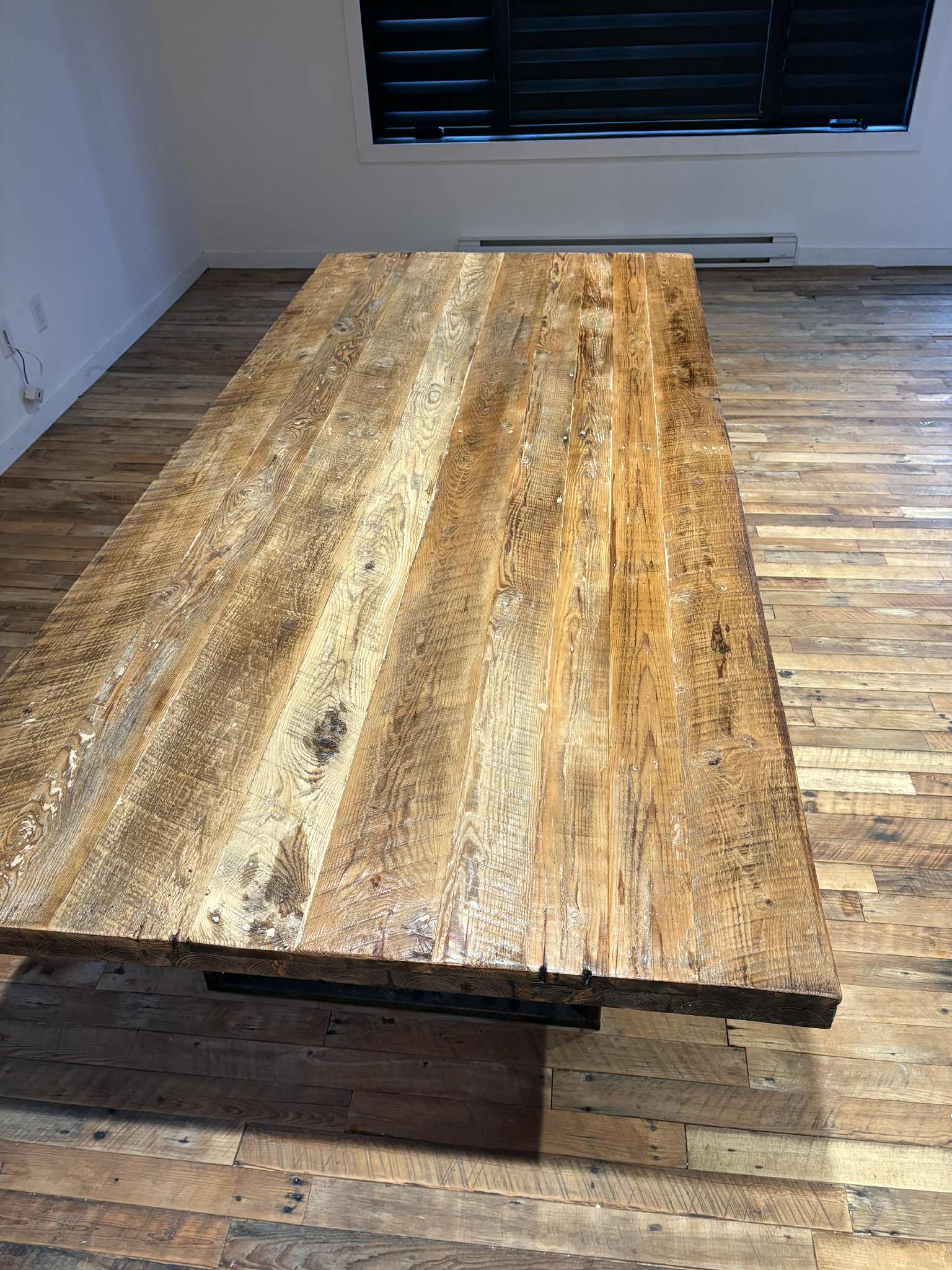 Nous offrons une table constituée d’époxy, parmi les plus écologiques sur le marché. En plus d’utiliser l’époxy la plus respectueuse de l'environnement, nous utilisions uniquement du bois recyclé pour sa conception. Ces fissures furent développées par la pression exercée sur ces poutres durant des centaines années.