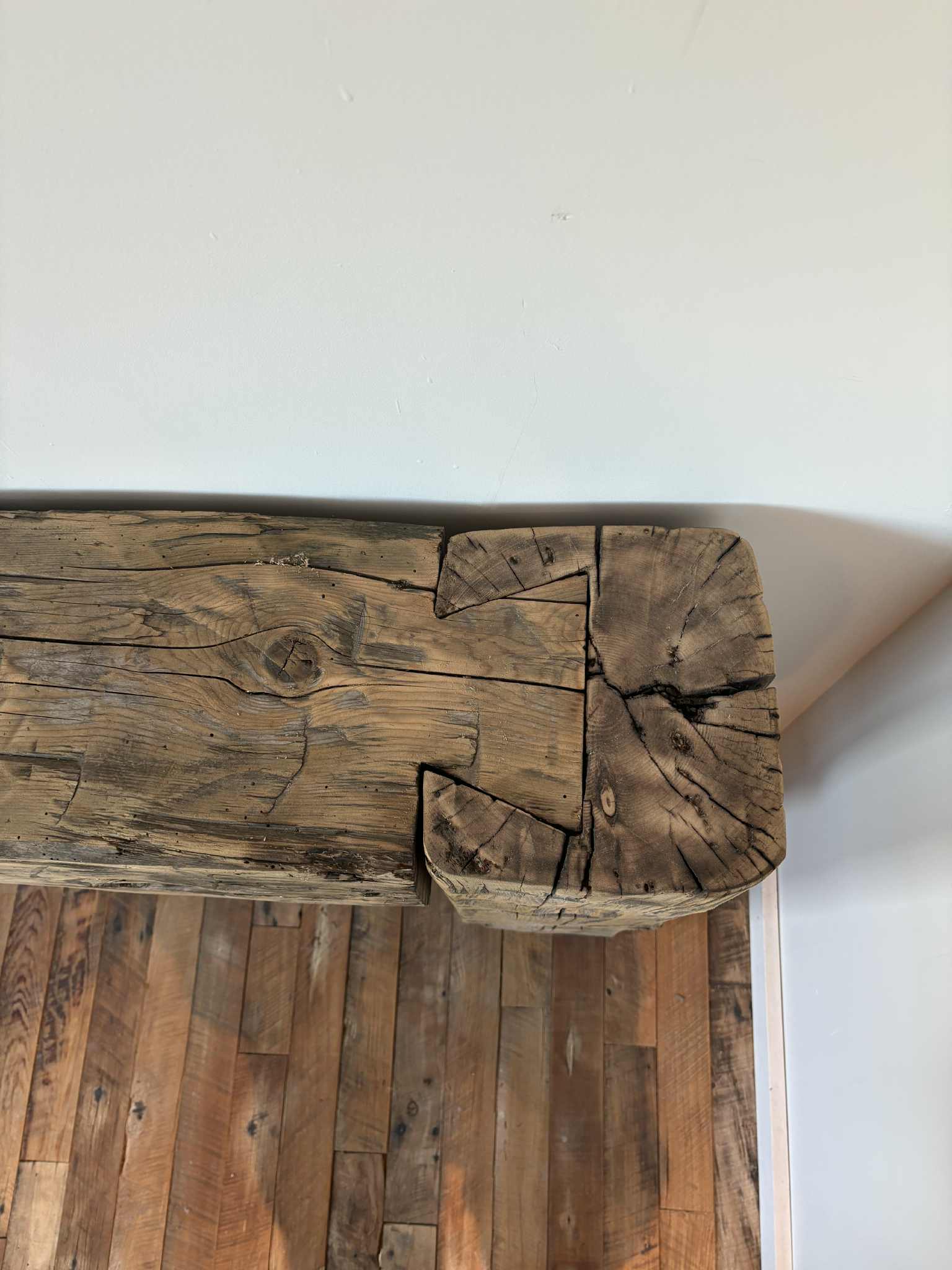 Remises en valeur avec soin, ces poutres retrouvent aujourd’hui une seconde vie sous la forme d’un meuble d’entrée chaleureux et authentique. Sa texture brute et son caractère unique apportent une âme et une présence incomparable à votre espace.